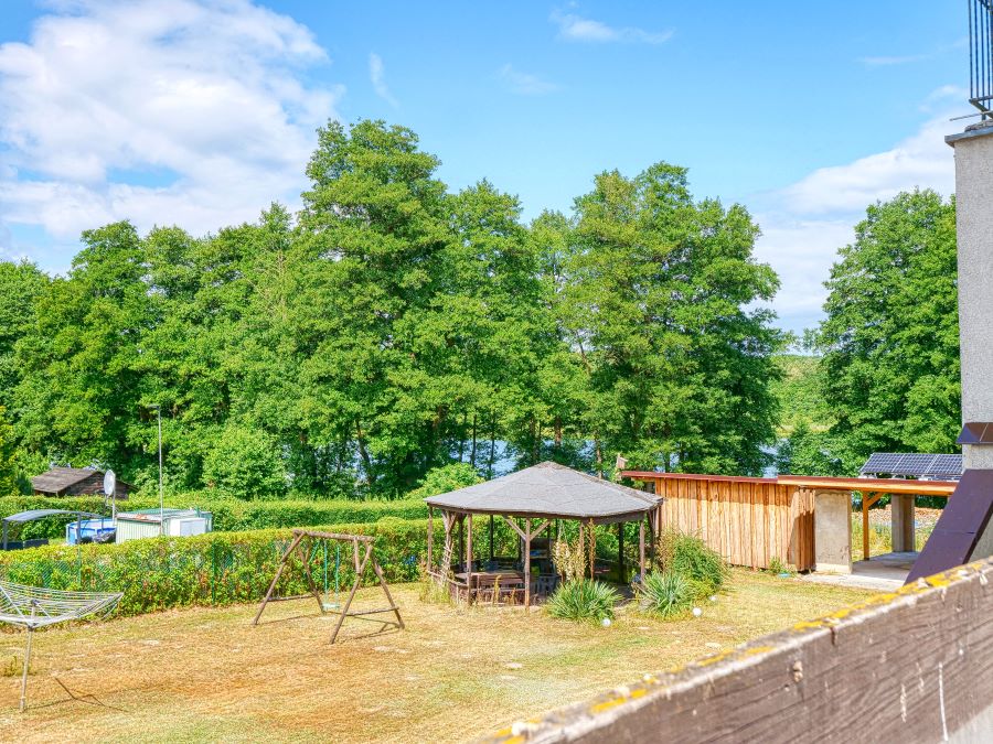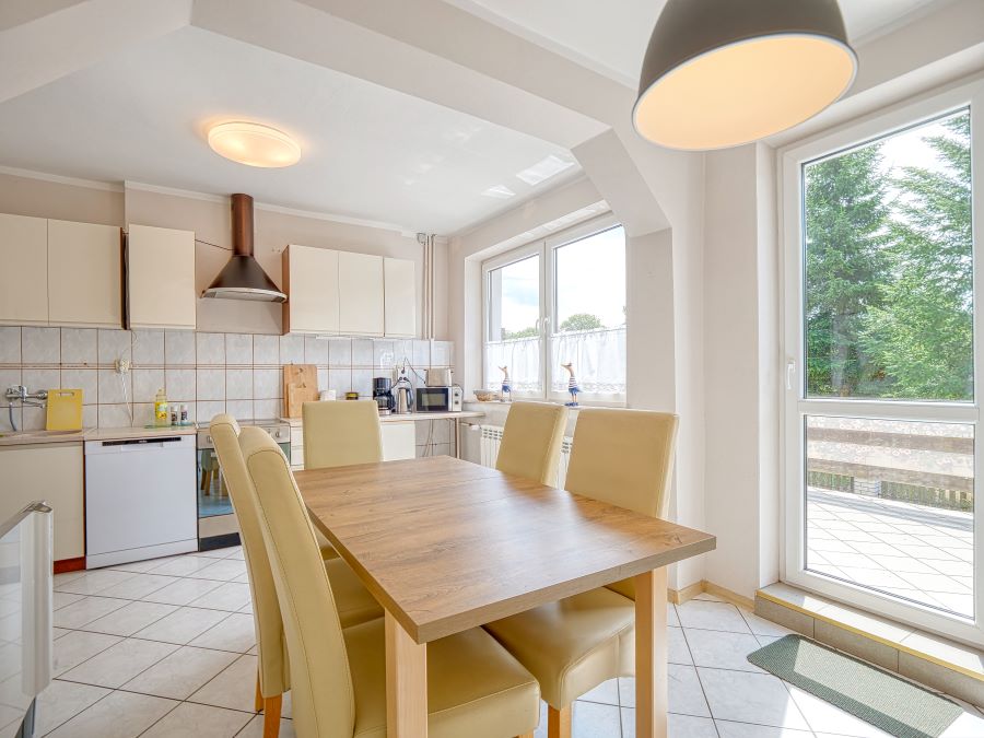 Auf die halb umlaufende, große Terrasse kommt Ihr von der Küche, vom Wohnzimmer und vom großen Schlafzimmer. Hier könnt Ihr frühstücken oder einfach den Sonnenuntergang genießen.