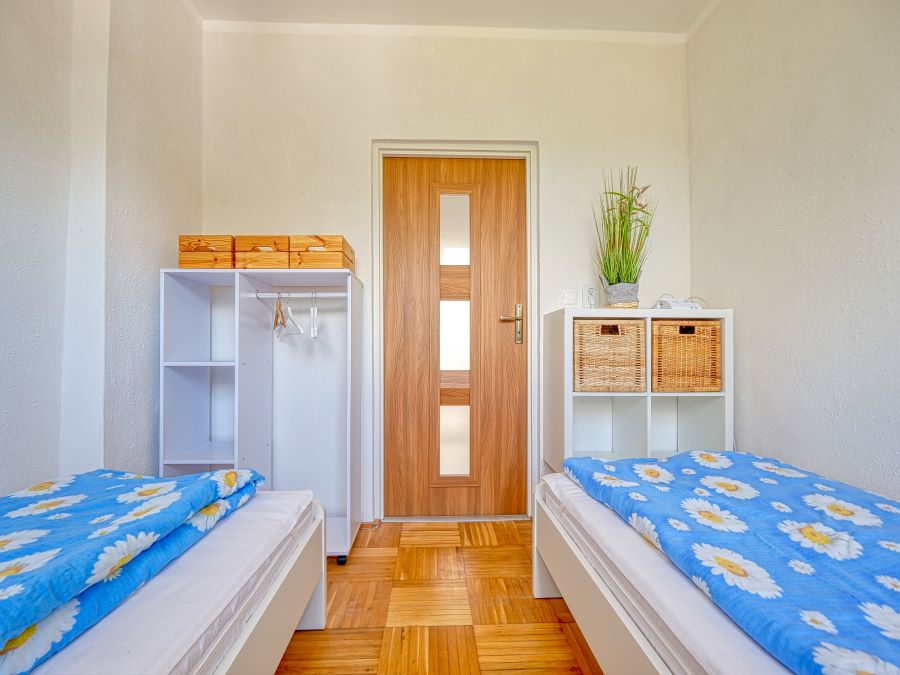 Im 65 m² großen Appartment 2 befinden sich ein gemütliches Wohnzimmer mit Kamin, Couch, Fernsehecke mit deutschem Sat-TV sowie einer gemütlichen Leseecke. An das Wohnzimmer schließt sich die Küche mit einer großen Essecke an, die mit seinem Tisch für bis zu 6 Personen auch zu gemütlichen Spieleabenden einlädt. Die Küche verfügt über eine Ausstattung für mindestens 6 Personen, E-Herd mit Backofen, Kühl-Gefrierkombination, Mikrowelle, Toaster, Kaffemaschine, Radio sowie einen Geschirrspüler. Das moderne Bad ist mit Dusche, WC und Handwaschbecken ausgestattet. Im kleinen Schlafzimmer gegenüber der Küche findet Ihr 2 einzelne Betten sowie Verstaumöglichkeiten für Sachen. Im großen Schlaftimmer befindet sich ein Queen Sitze Bett sowie ein seperates Einzelbett. Es gibt es außerdem noch einen großen Schrank um einige Dinge zu verstauen.